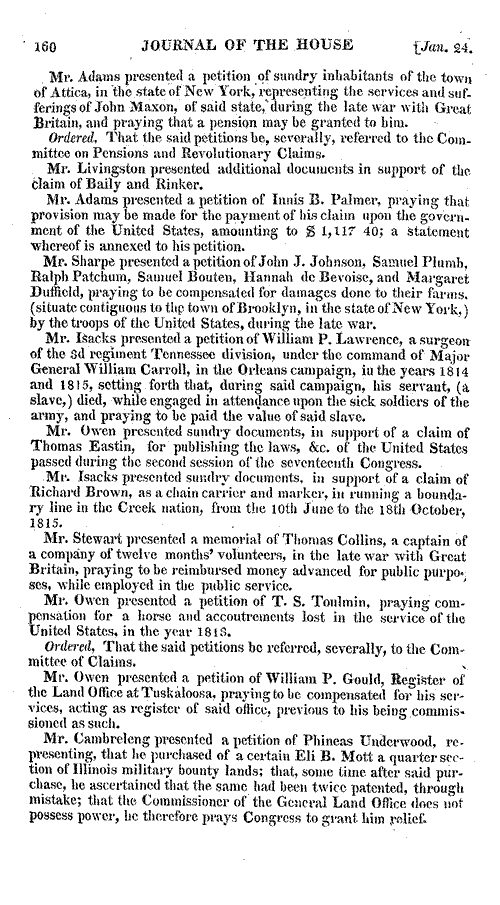 160 (Stored here) Mr. Cambreleng presented a petition of Phineas Underwood, representing,